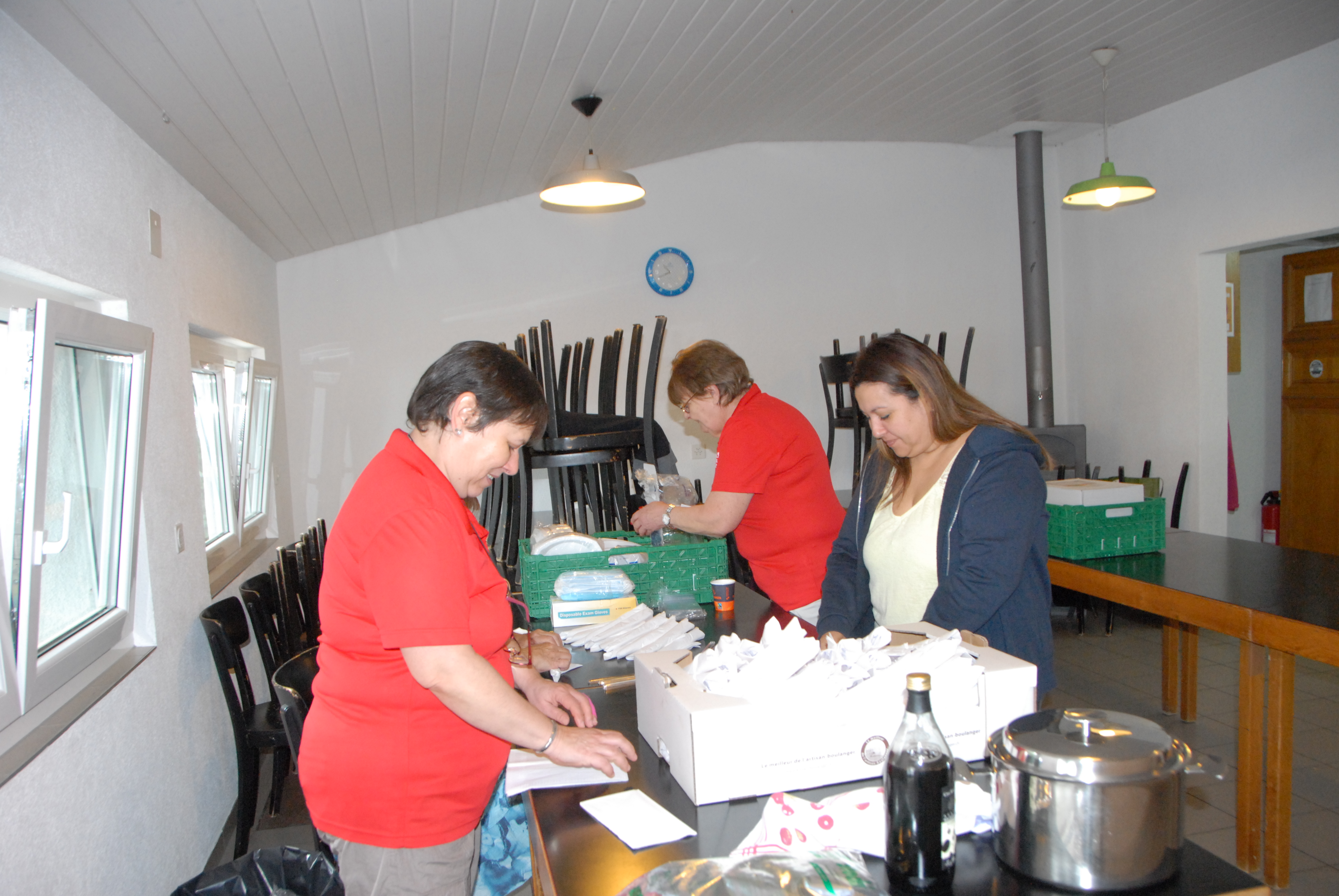 Mais comme nous sommes des sportifs, nous avons également distribué de nombreuses boîtes de Coca, de minérales et moulu des kilos de café.